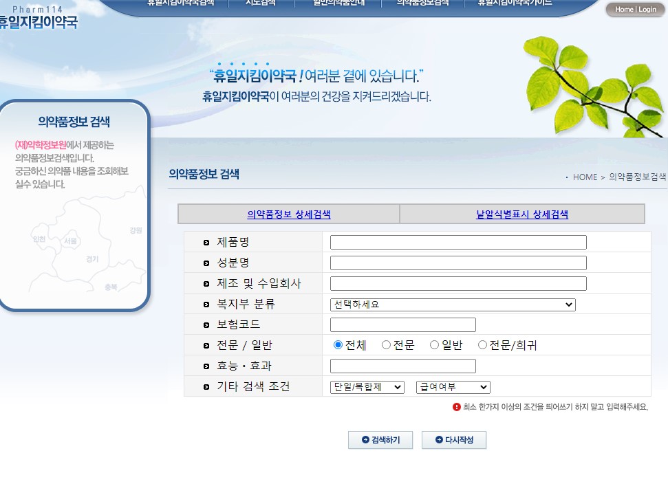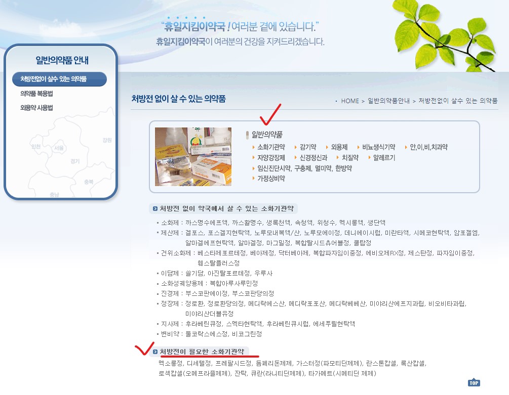 그리고 휴일지킴이 약국 사이트를 보시면 일반의약품 안내-> 처방전 없이 살 수 있는 의약품이 나옵니다.
