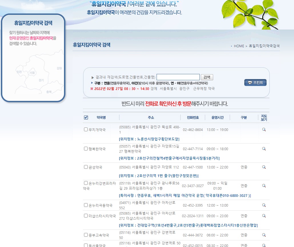 이상 휴일지킴이 약국 찾기 정보였습니다.