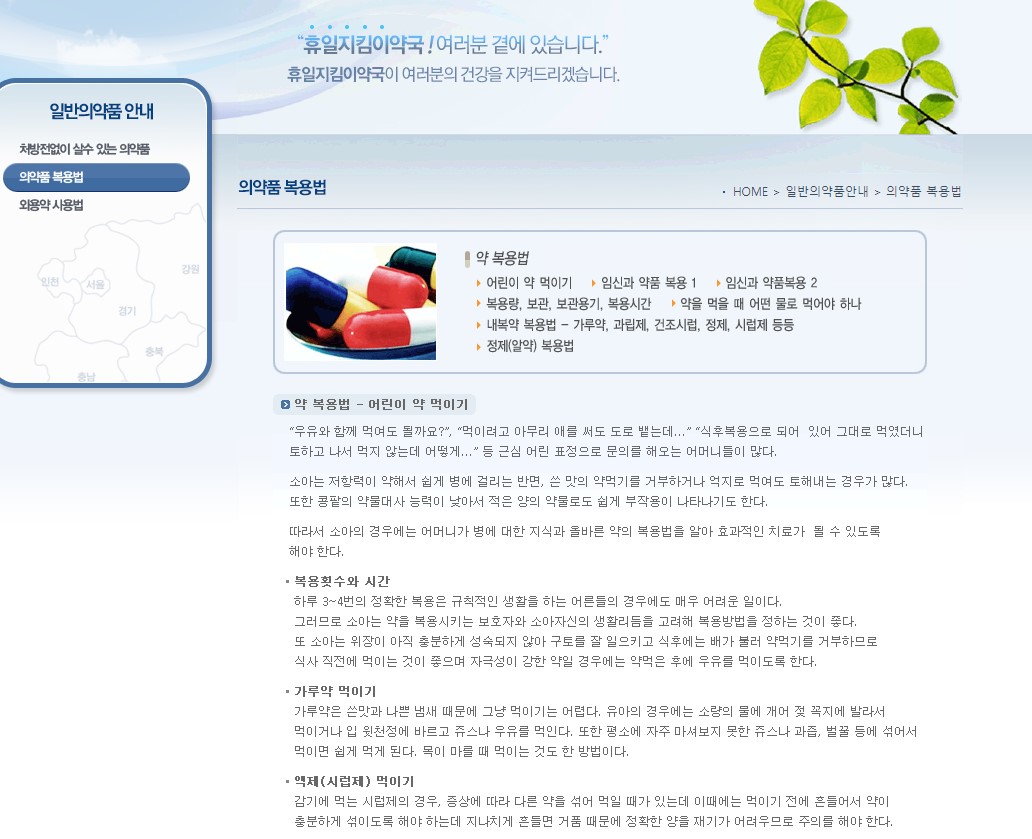 휴일지킴이 약국 사이트에서 의약품 복용법이 궁금할 때가 굉장히 많은데요.